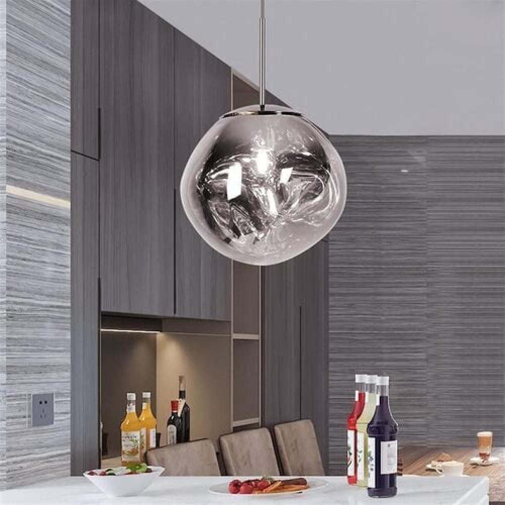 ثريات مودرن علاقي كرات الصخور البركاني بالوانها الفضي والذهبي و العنابي تقدم لك الحل: