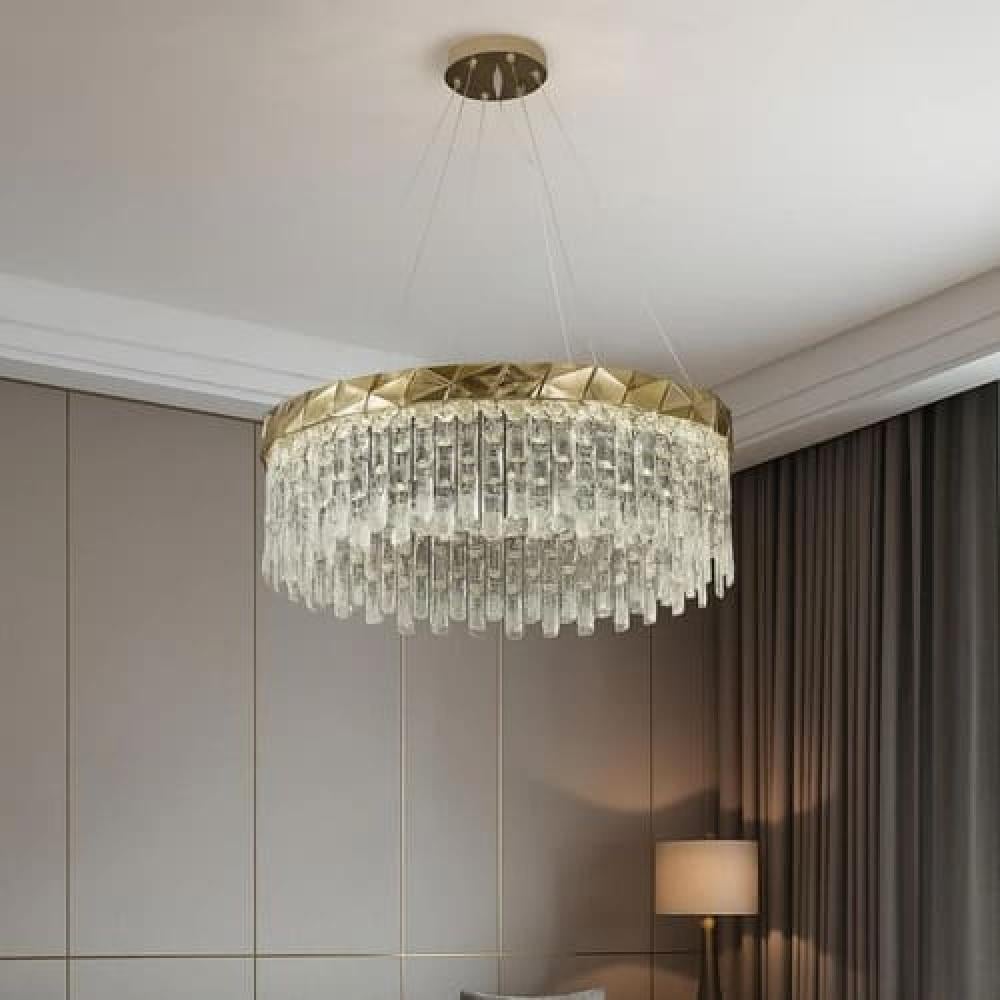 ثريات مودرن علاقي كريستال ذهبية– تصميم مميز مودرن يضفي لمسة فاخرة على سقف المجالس والمشاريع العصرية
