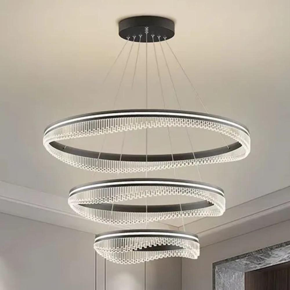 لا تفوّت فرصة التميز – احصل على ثريا مودرن LED ثلاثية الحلقات تضيف بُعدًا بصريًا وأناقة خالدة إلى سقف منزلك أو مشروعك. اطلبها الآن من نقطة الإضاءة.