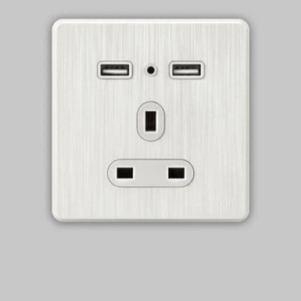 - فيش 13امبير مع منفذي USB مصنوع من اجود انواع البلاستيك والحديد والنحاس لضمان ميزات مقاومة التاكل والاهتراء ومقاومة الضغط العالي ودرجات الحرارة للحصول على عمر افتراضي طويل .