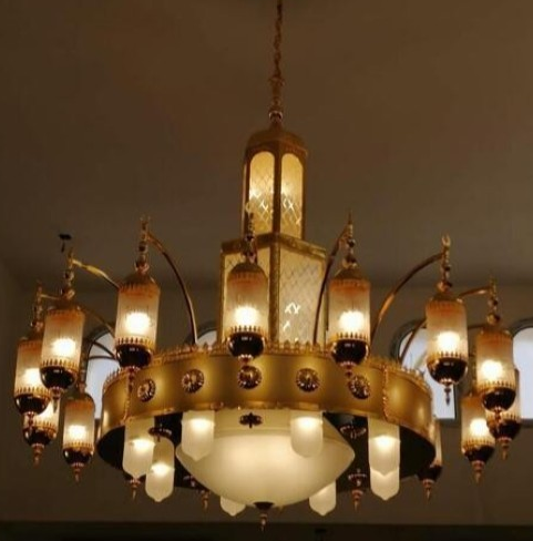 8) ثريات إسلامية بطابع شرقي: تصاميم تجمع بين الفخامة والتفاصيل الهندسية المستوحاة من الفن الإسلامي.